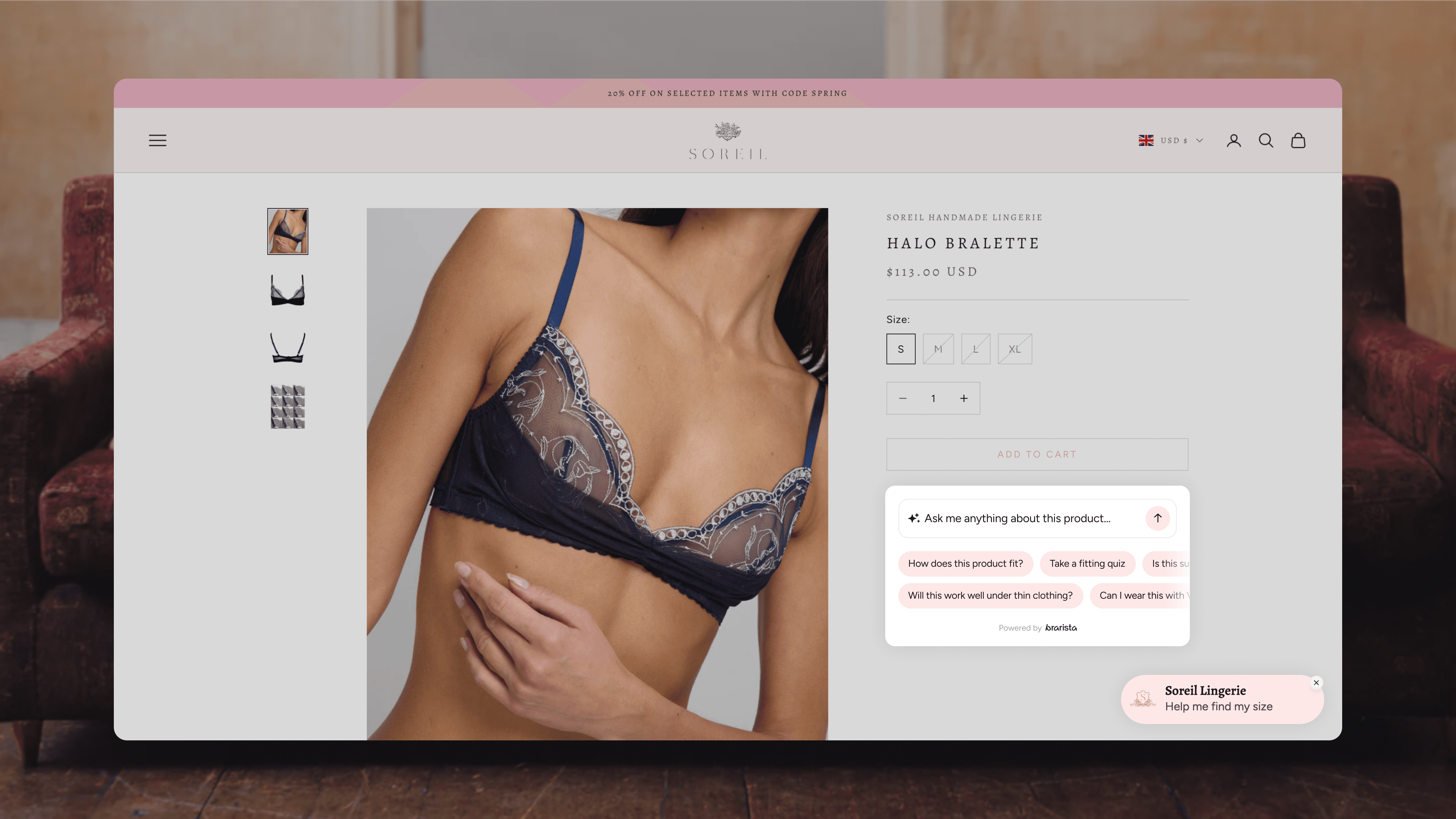 Soreil launched with both Brarista's Full Chatbot and Mini Chatbot, giving every stage of the shopping journey its own layer of intelligent fit guidance.